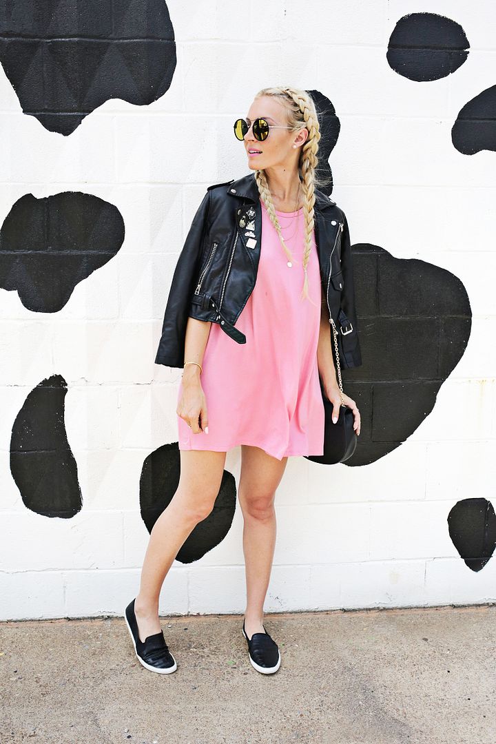 I got to go out with Todd on the first week of their 3 month summer tour with Twenty One Pilots a few weeks ago and we had a day off between shows where the bus was parked in a giant mall parking lot. It’s not too hard to guess what I did that day and I found this super comfortable pink t-shirt dress that was just the thing to pair with my Kail sneakers and beat the summer heat. Layers are key to surviving the back and forth between the cranked AC of the bus and arena and the sweltering heat of the outside world— jacket on, jacket off, jacket on, jacket off! Anyways, on these arena tours, one thing that’s a given is that you’ll be walking a lot. Whether it’s winding through the giant arena maze to get to catering or the green room or just trying to explore a new city for a few hours between band duties, a good pair of walking shoes is a must and the Kail didn’t let me down!